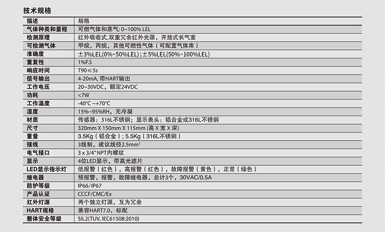 PrimaX IR Pro點式紅外可燃氣體探測器,采用雙重冗余紅外光源技術,以及開放式長氣室設計,有效降低雨水、煙霧、灰塵,以及其他環境因素的影響,賦予產品極佳的可靠性能;其光學系統專為信號靈敏度優化設計,使得產品具備極佳的穩定性和更快的晌應速度。